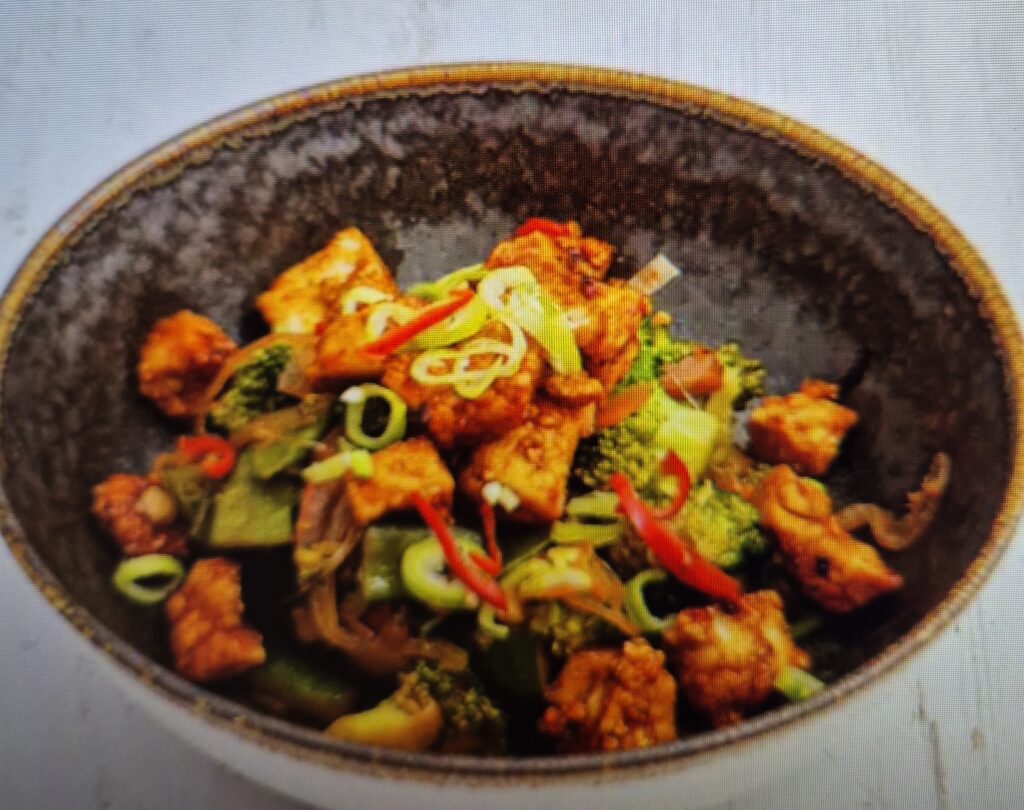Tofu-Gemüsewok mit Cashewkernen und Glasnudeln