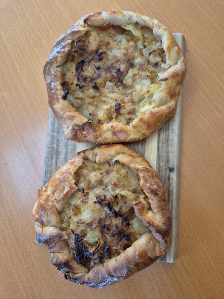 Schmelzzwiebelgalette mit Sauerrahm und Schnittlauch