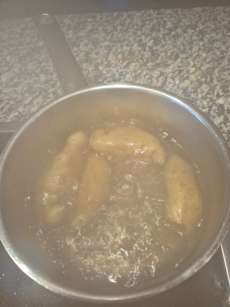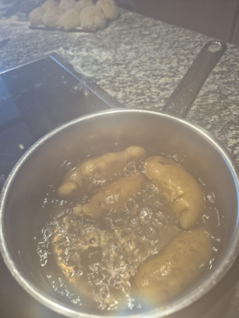 - 4 Kipfler gekocht und geschält