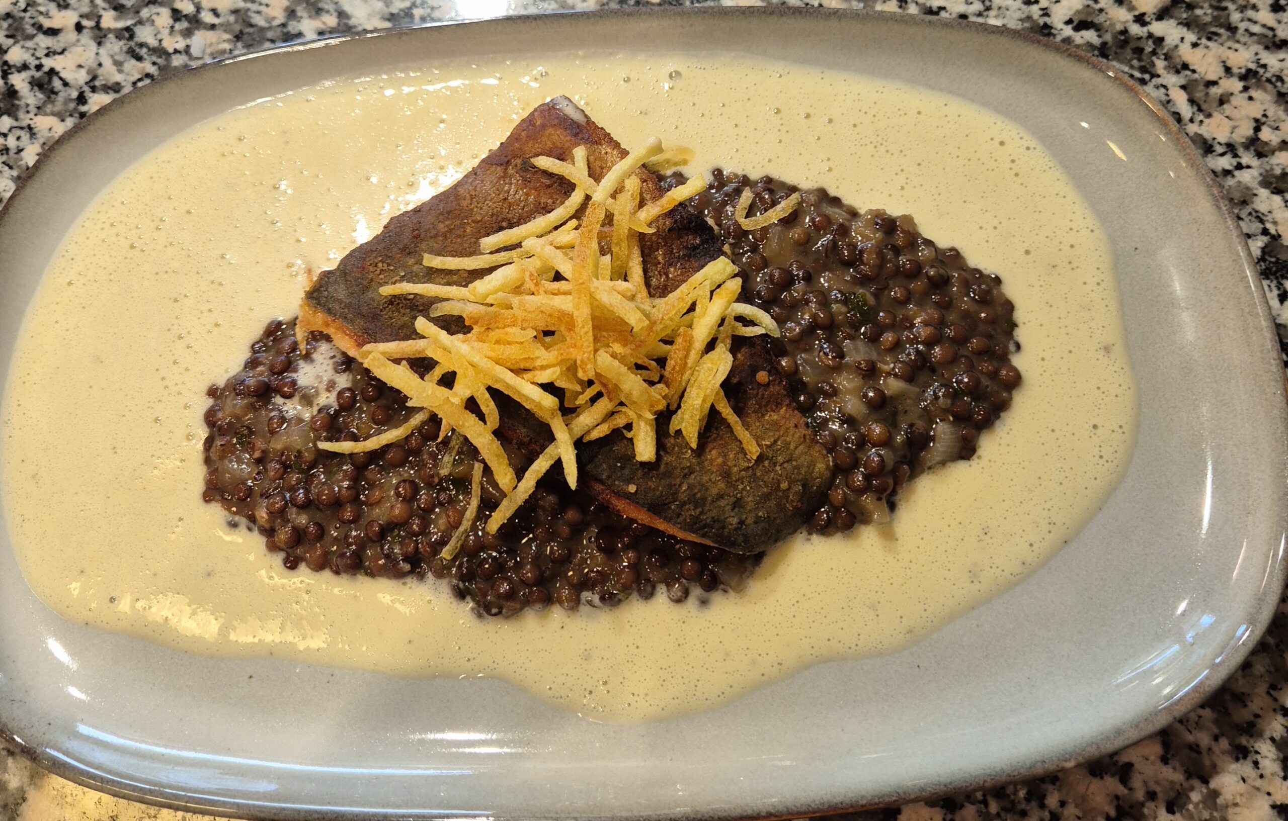 Lachsforellenfilet auf Balsamicolinsen und weißem Balsamicoschaum Christa Groher | Veröffentlicht am 18. Oktober 2025 | Lachsforellenfilet auf Balsamicolinsen und weißem Balsamicoschaum